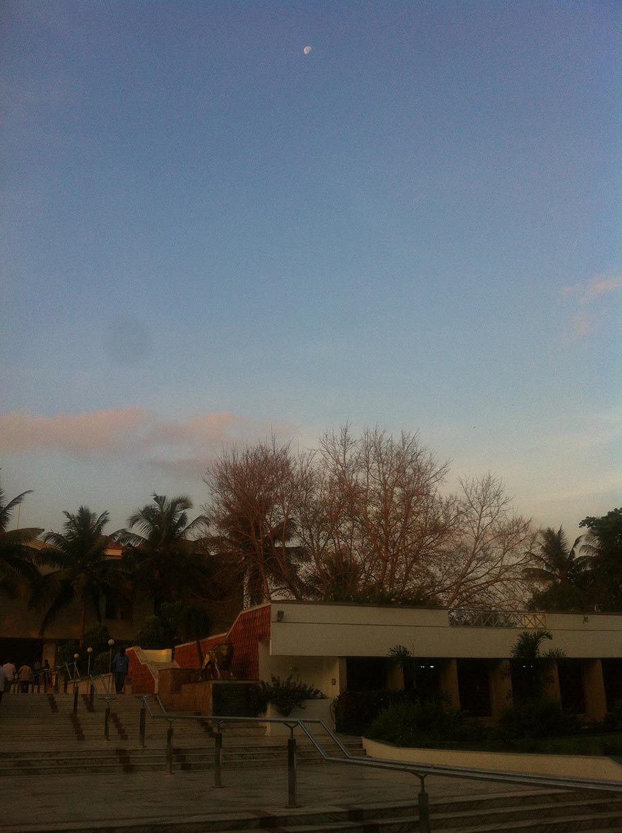 Babuji Memorial Ashram – lever de lune sur le hall de méditation